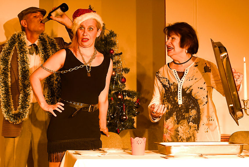 Wie immer wollen Oma und Opa ein friedliches, harmonisches Weihnachtsfest feiern. Wie immer ist die Tochter mit ungeliebtem Schwiegersohn und deren Kinder eingeladen. Opas Freund kommt auch zu Besuch…, die Enkelin hat einen neuen Freund, der nicht eingeladen wurde. Zum Schrecken aller kommt der außergewöhnliche Freund doch noch, aber nicht erst jetzt geht das familiäre Weihnachtschaos los !